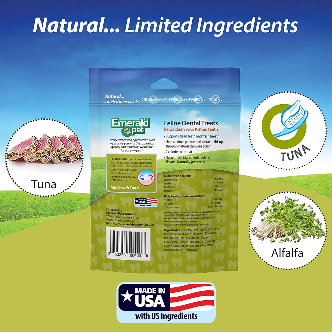 Descubre el delicioso Emerald Pet Cat Snack Dental Catnip, una golosina que no solo deleitará a tu gato, sino que también le proporcionará un aliento fresco y cuidado dental. Con un sabor irresistible a Catnip, esta golosina es perfecta para consentir a tu mascota. Su textura crocante garantiza una experiencia de masticación placentera y entretenida. Con un peso neto de 85 g, este snack es ideal para premiar a tu gato en cualquier momento del día. ¡No esperes más y sorprende a tu felino con esta deliciosa golosina!